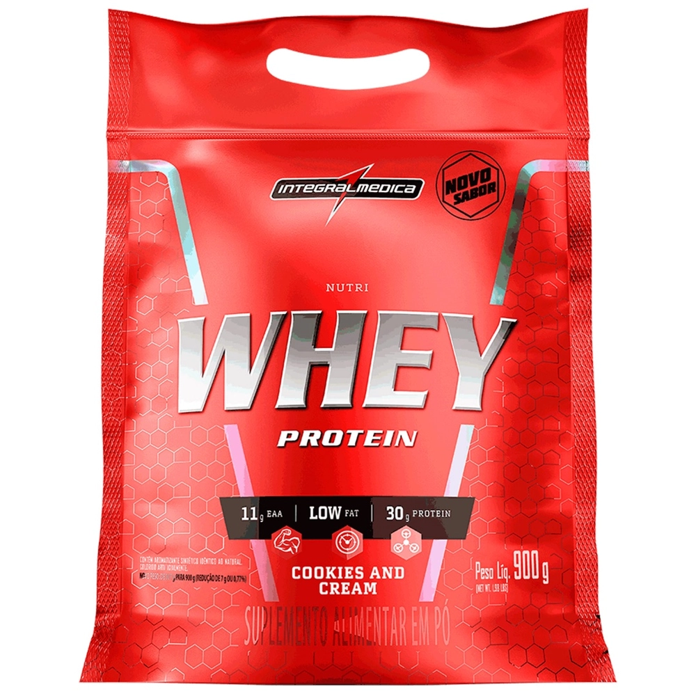 Nutri whey protein (907G) refil – integralmedica Nutri Whey Protein Integralmedica é um suplemento inovador na área dos compensadores que fornece, na porção diária, 30g das melhores proteínas, proporcionando um aumento de volume corporal saudável. Sua fórmula é altamente solúvel, possui teor ideal de carboidratos complexos (maltodextrina) e simples (frutose) e é isenta de sacarose (açúcar), garantindo energia aos músculos nas várias fases do exercício físico. Gera reserva de glicogênio muscular, muito importante para a recuperação pós-treino, potencializando simultaneamente o ganho de massa magra. As proteínas do soro do leite (whey protein), proteína isolada de soja (supro), albumina e demais proteínas animais beneficiam significativamente o desempenho de atletas de pessoas fisicamente ativas, melhorando seu sistema imunológico. Nutri Whey Protein fornece ótimos teores de bcaas, que possuem ação anticatabólica e fornecem energia local para músculos. Contém vitaminas e minerais, nutrientes extremamente necessários aos processos metabólicos, possibilitando que a síntese proteica no organismo ocorra de modo completo e eficaz. Fórmula de fácil solubilidade; Delicioso sabor; 30g das melhores proteínas. Ingredientes: maltodextrina, proteína concentrada do soro de leite, frutose, colágeno hidrolisado, albumina desidratada, proteína isolada do soro de leite, mix de minerais cálcio (fosfato de tricálcio anidro), fósforo (fósforo monocálcio mono-hidratado), magnésio (sulfato de magnésio mono-hidratado), iodo (iodeto de potássio anidro), molibdênio (molibdato de sódio di-hidratado), selênio (selenito de sódio anidro), cromo (cromo aminoácido), ferro (ferro reduzido), flúor (flureto de sódio anidro), manganês (sulfato de manganês mono-hidratado), mix de vitaminas a (palmitato de retinol), b9 (ácido fólico), c (ácido ascórbico), h (biotina), b3 (niacina), e (acetato de tocoferol), b5 (pantotenato de cálcio), d (colecalciferol), b12 (cianocobalamina), b2 (riboflavina) e b1 (tiamina mononitrato), ácido cítrico (acidulante), aroma artificial, sucralose (edulcorante) e corante bordeaux (artificial). Sugestão de uso: Diluir 16 colheres de sopa (120 g) de nutri whey protein em 300 ml de água. Com o auxílio de uma coqueteleira ou liquidificador, bater até a diluição total do produto. Consumir 2 porções ao dia, sendo uma delas preferencialmente após o treino e a outra entre as refeições, ou conforme orientação profissional. Contraindicação: Diabéticos: contém glicose e frutose.